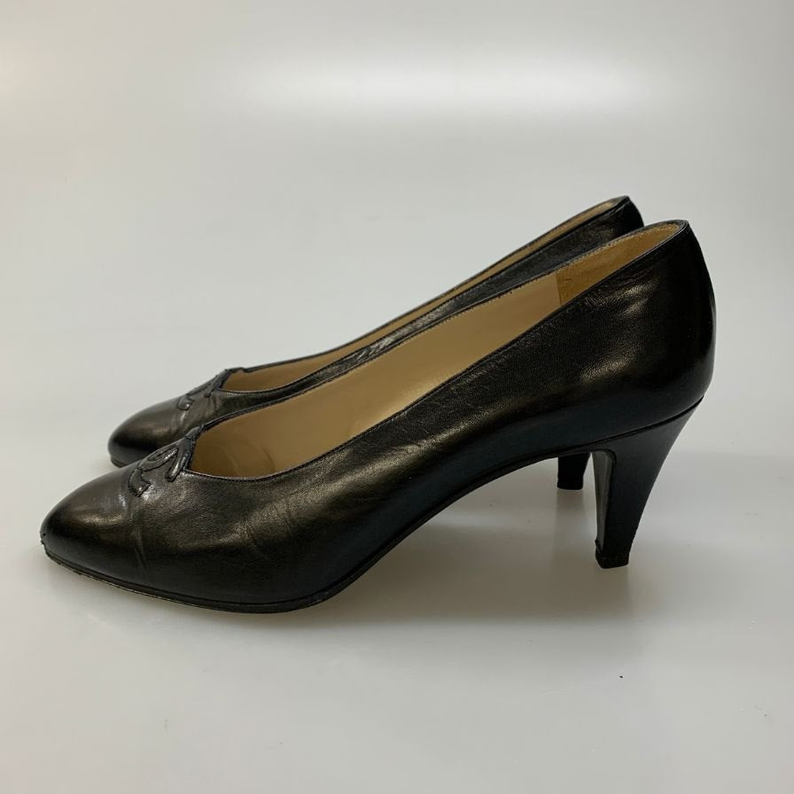 シャネル CCロゴ パンプス レディース サイズ 37.5 ブラック CHANEL 約24.5cm【AFC47】