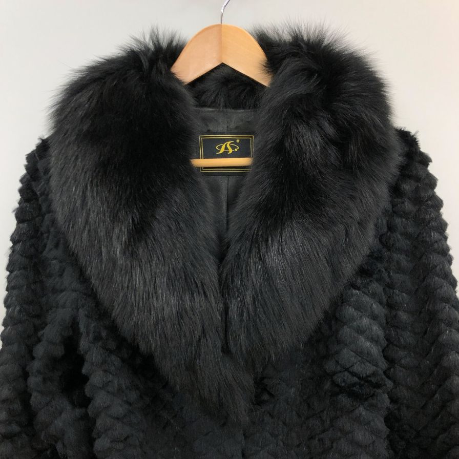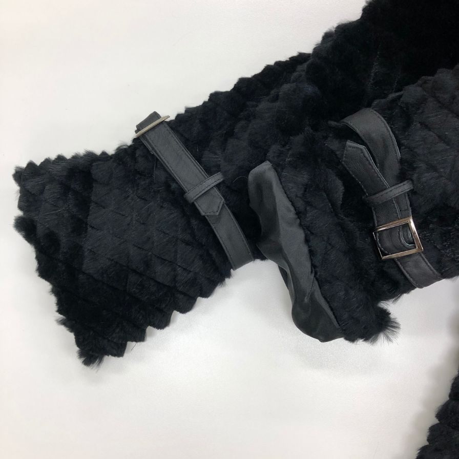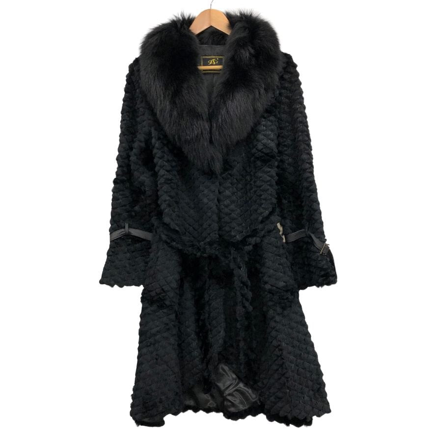新品同様◆ココン ジャパン ミンクコート 襟ファー ハーフ丈 ベルト ブラック レディース サイズM cocon japan 【AFF22】
