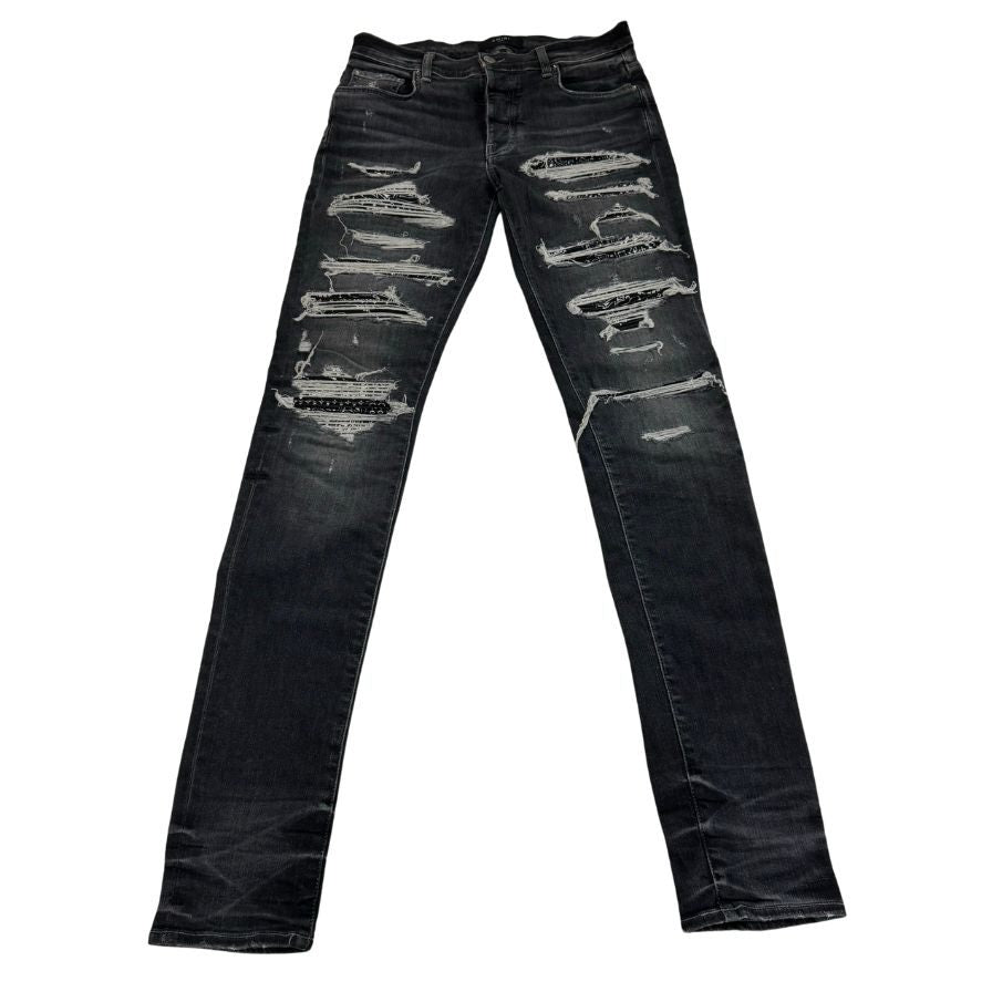 アミリ デニムパンツ バンダナ デストロイ加工 ブラック メンズ サイズ31 AMIRI 【AFB38】