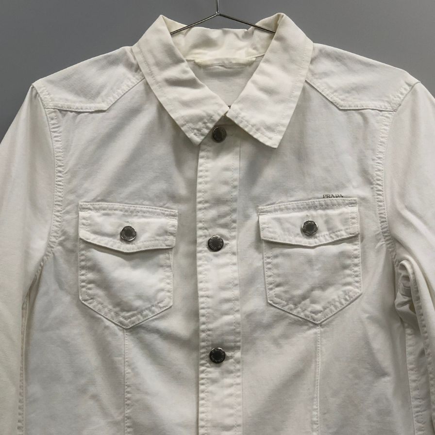 中古◆プラダ 06AW デニムジャケット ロゴボタン ホワイト メンズ サイズ46 GEB007 PRADA 【AFA17】