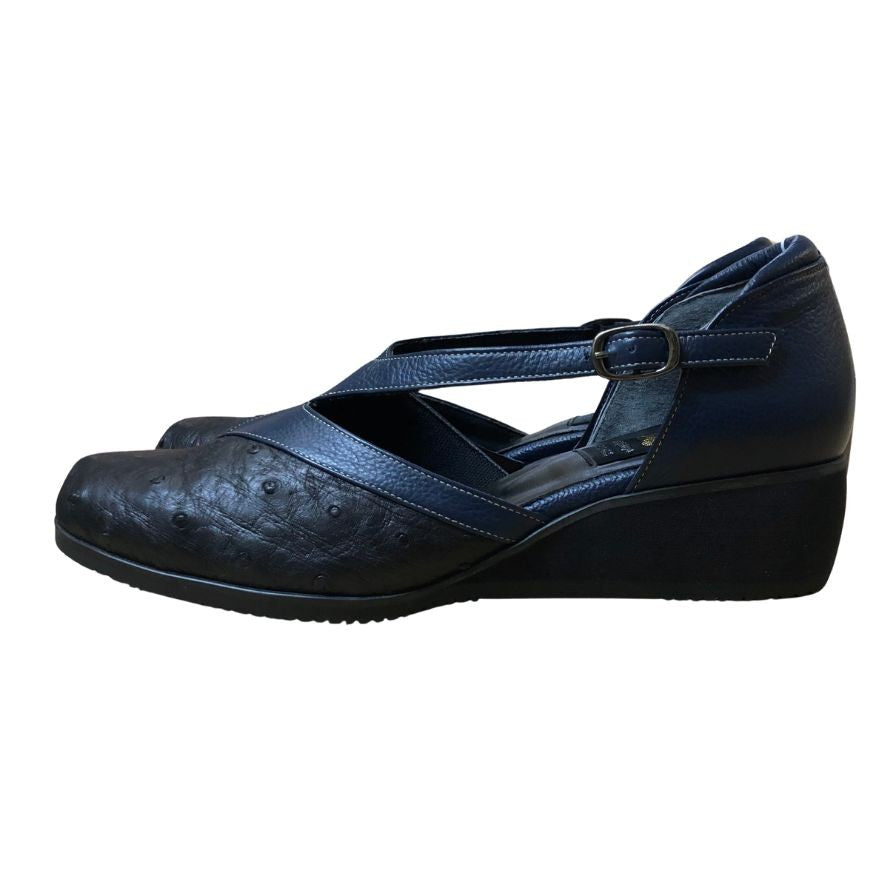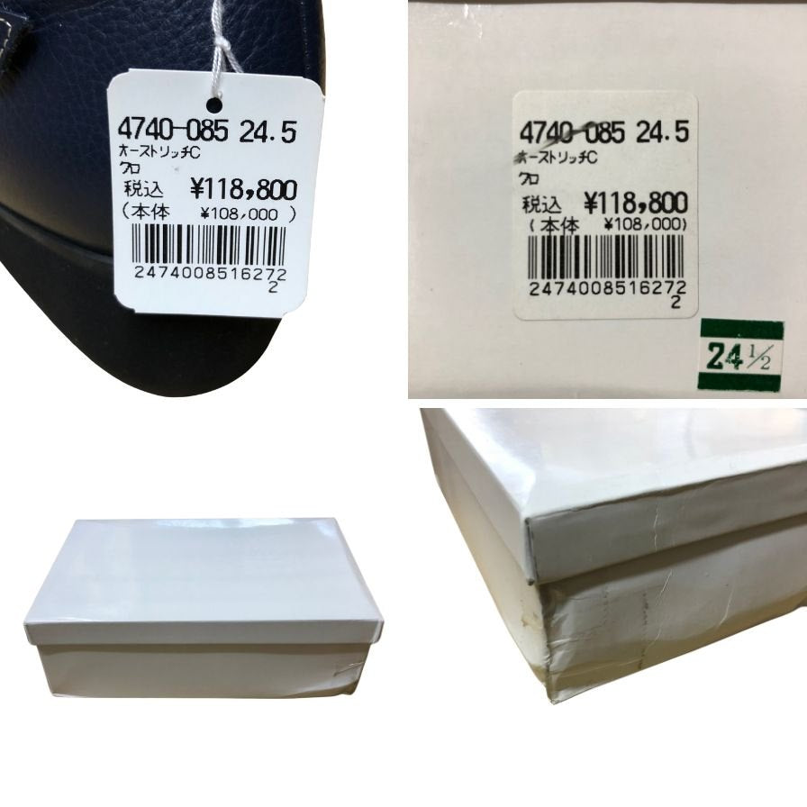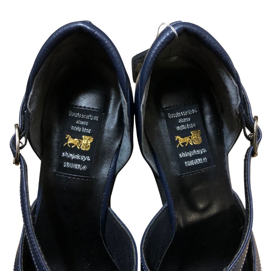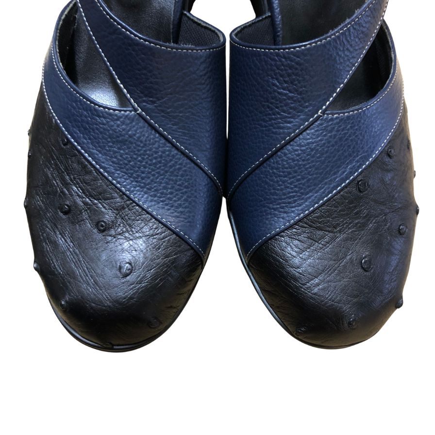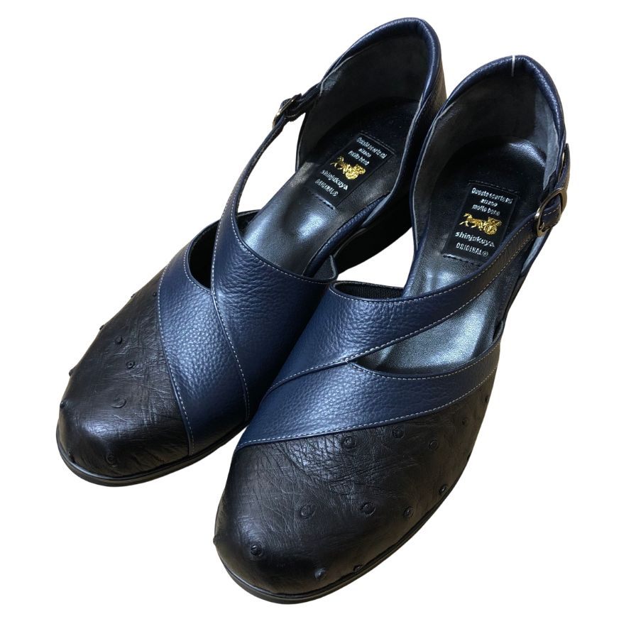 新宿屋 レザーパンプス オーストリッチ 4740-065 ブラック×ブルー 24.5cm レディース shinjukuya 約24.5cm【7F2-1】
