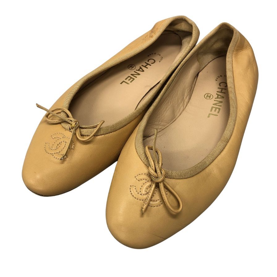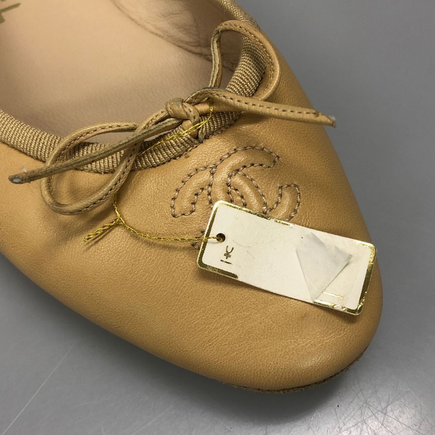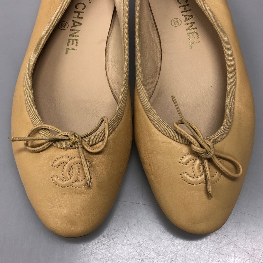 シャネル バレエシューズ CCマーク レディース サイズ37 ベージュ CHANEL 約23.5cm【AFC3】