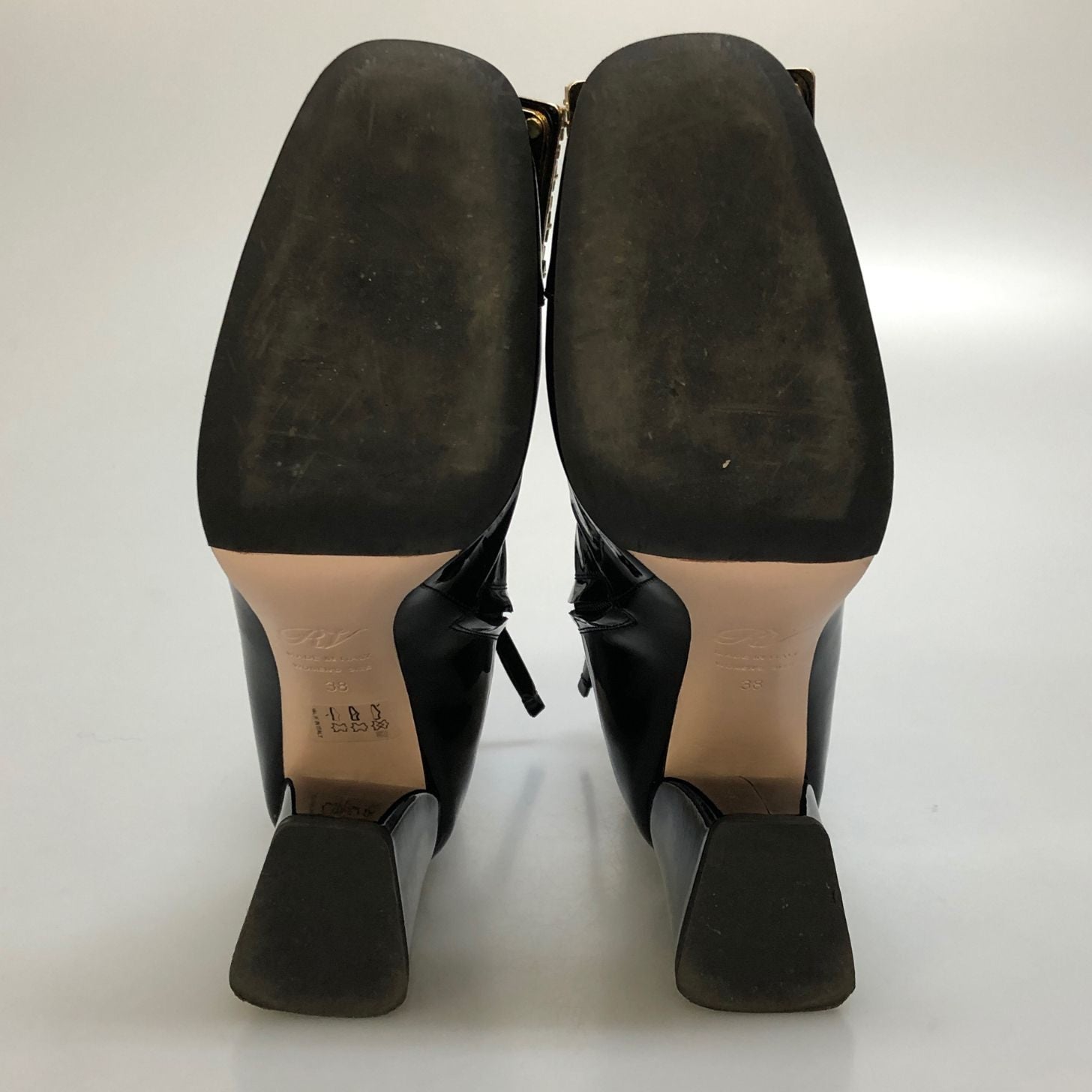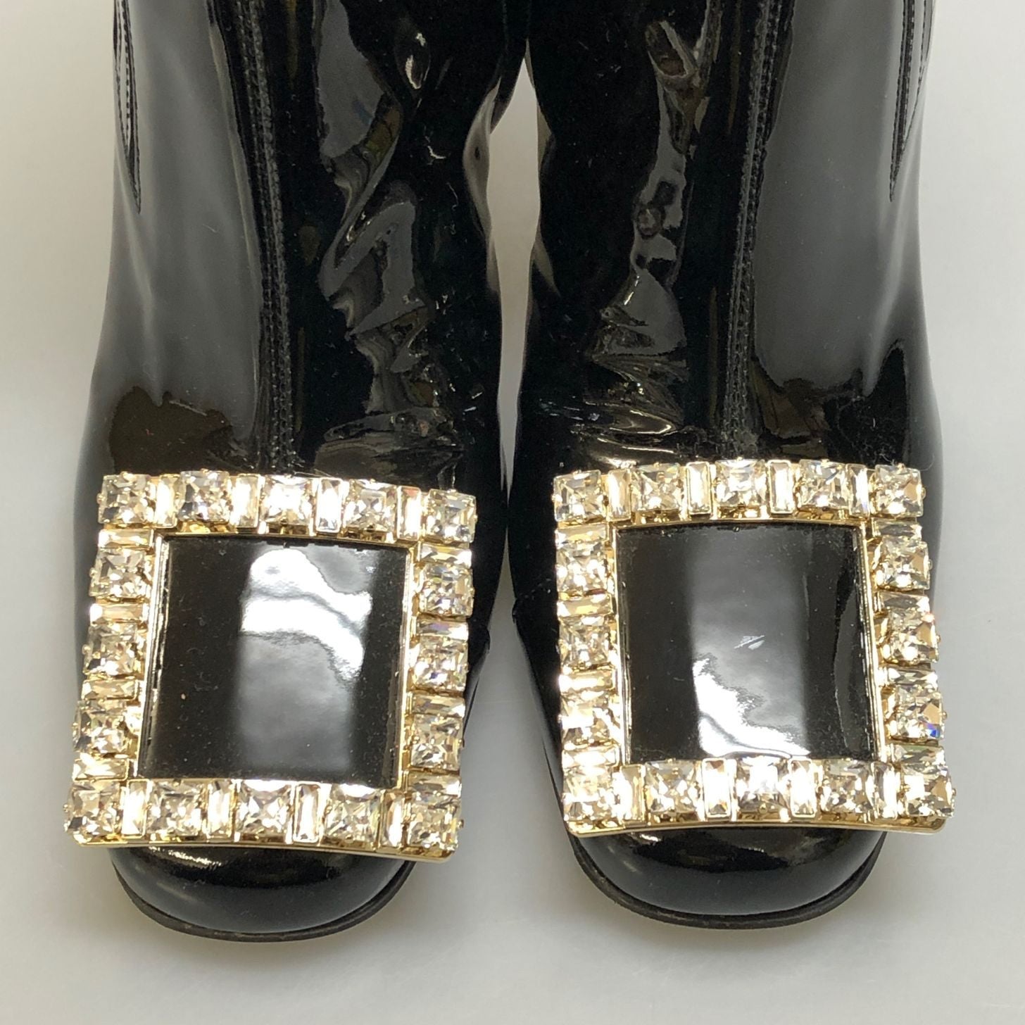 ロジェヴィヴィエ ショートブーツ パテントレザー スクエアバックル ビジュー ブラック レディース サイズ38 ROGERVIVER 約25.0cm【AFC29】