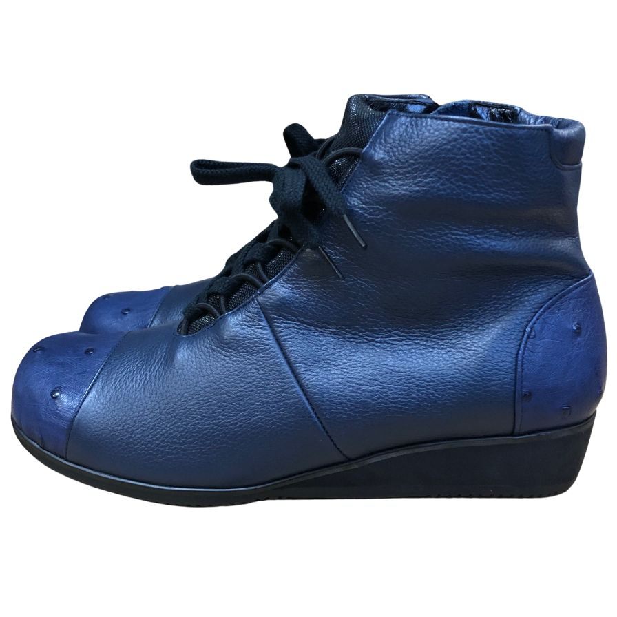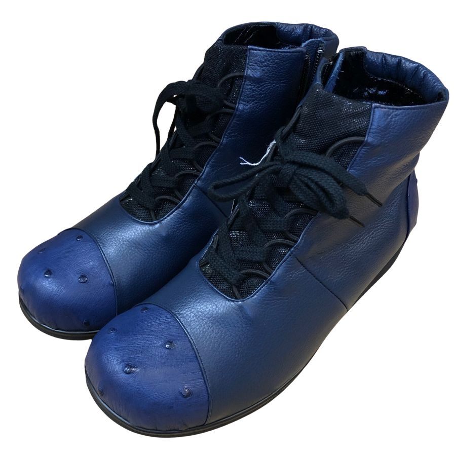 新宿屋 レザーブーツ オーストリッチ 2771-085 24.5cm レディース ブルー shinjukuya 約24.5cm【7F3-2】