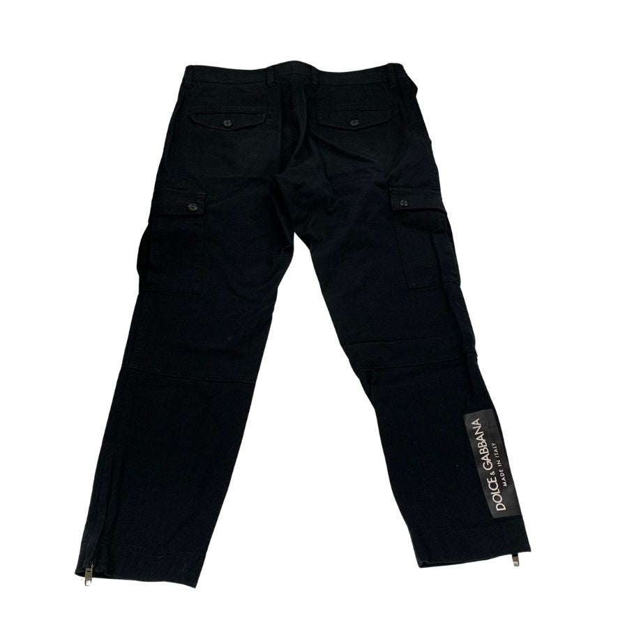 ドルチェ&ガッバーナ テーパードパンツ 裾ジップ ロゴタグ付 22SS コットン ブラック メンズ サイズ48 GYA8ET FUFGD DOLCE&GABBANA 【AFB36】