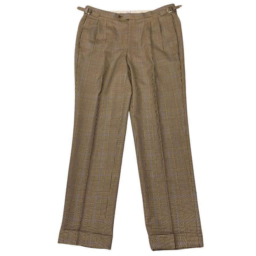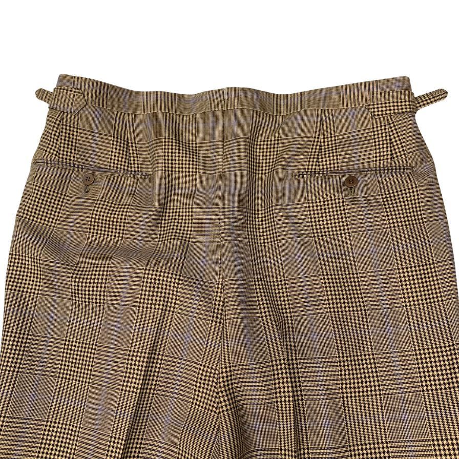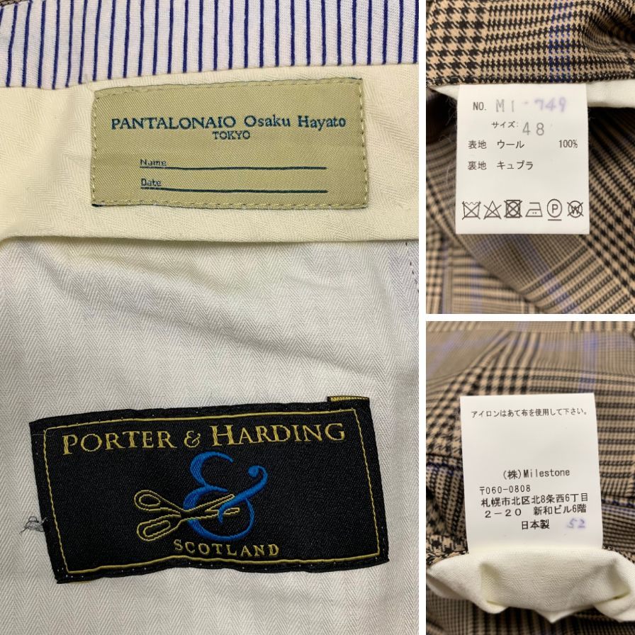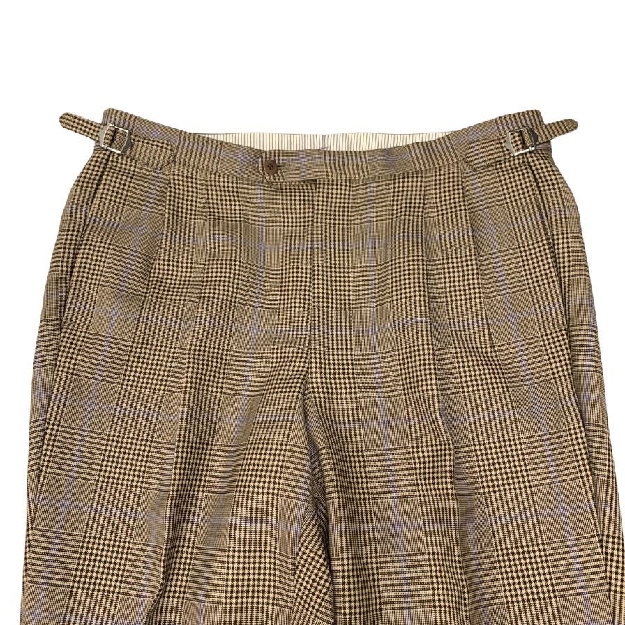 パンタロナイオ 尾作隼人 サイドアジャスターパンツ トラウザー チェック柄 ブラウン系 ウール100% サイズ48 メンズ PANTALONAIO Osaku Hayato 【AFB2】