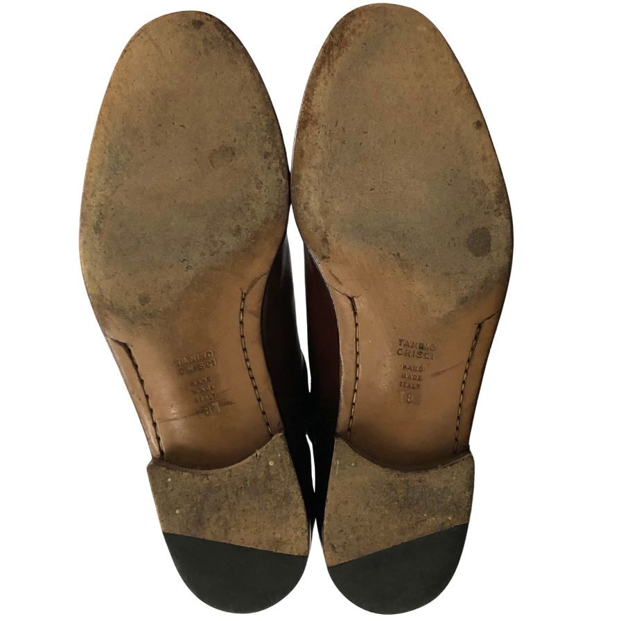 タニノ・クリスチー(TANINO CRISCI)は、1876年にイタリアのミラノで創業された高級シューズブランドです。元々は乗馬用ブーツの製造から始まり、その優雅なデザインと履き心地の良さで知られる名靴として名を馳せました。創業以来、クリスチー家が4代にわたって経営を守り続け、上質なカーフを使用した靴は、独自のマッケイ製法による快適さが特徴です。2011年にブランドは廃業しましたが、現在も希少なアイテムとして高く評価されています。― 株式会社ストックラボによるオリジナルテキスト |