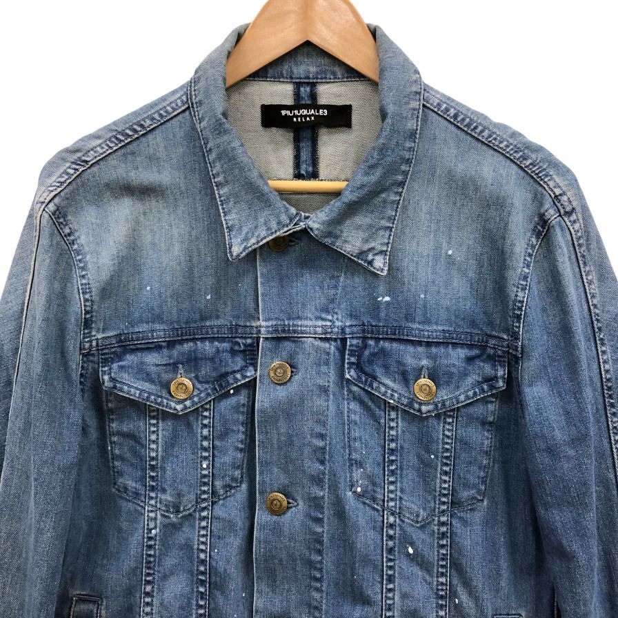 中古◆ウノピュウノウグァーレトレ リラックス デニムジャケット ペンキ加工 Gジャン ライトアウター ライトブルー メンズ サイズL 1PIU1UGUALE3 【AFB22】