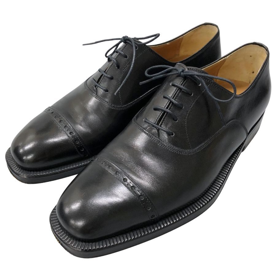 ストールマンテラッシ レザシューズ パンチドキャップトゥ ブラック サイズ38.5 SUTOR MANTELLASSI 約23.5cm【AFD6】
