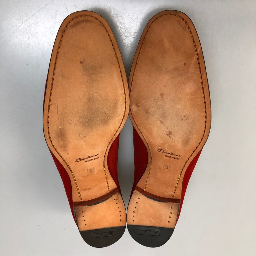 サントーニ スリッポン 9517 スエード モカシン Uチップ レッド サイズUK8 Santoni 約26.5cm【AFC5】