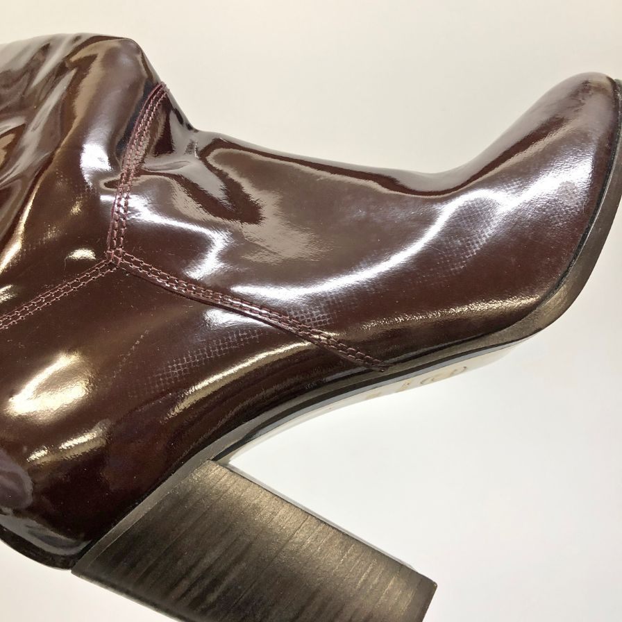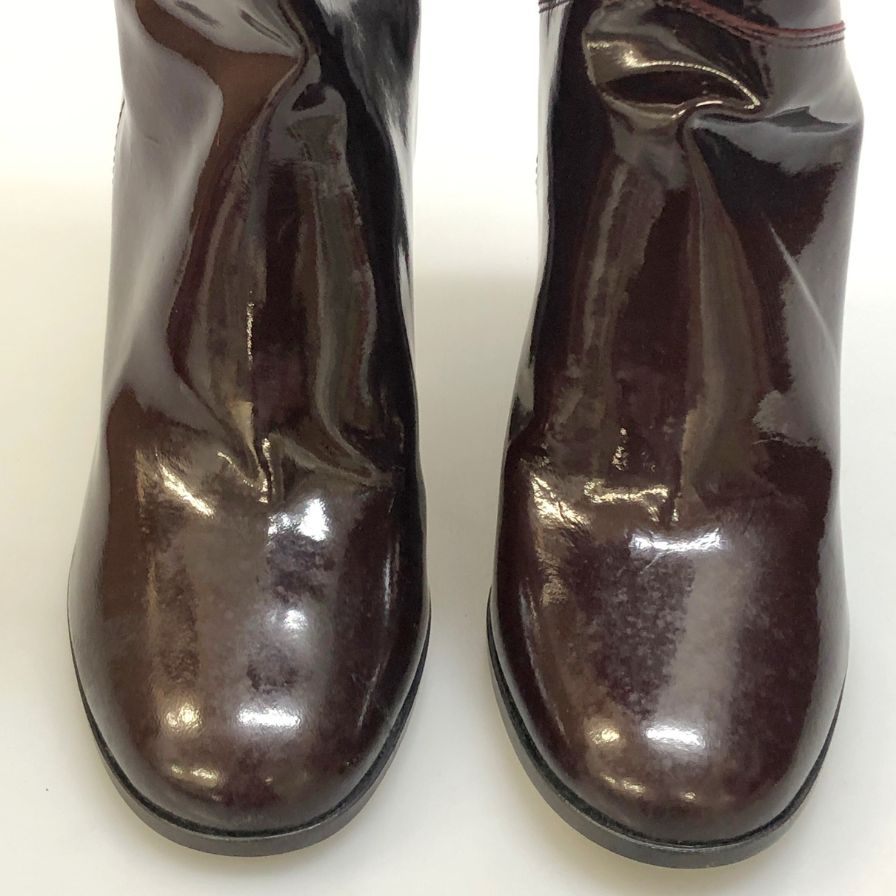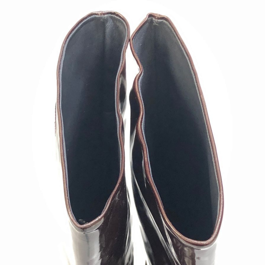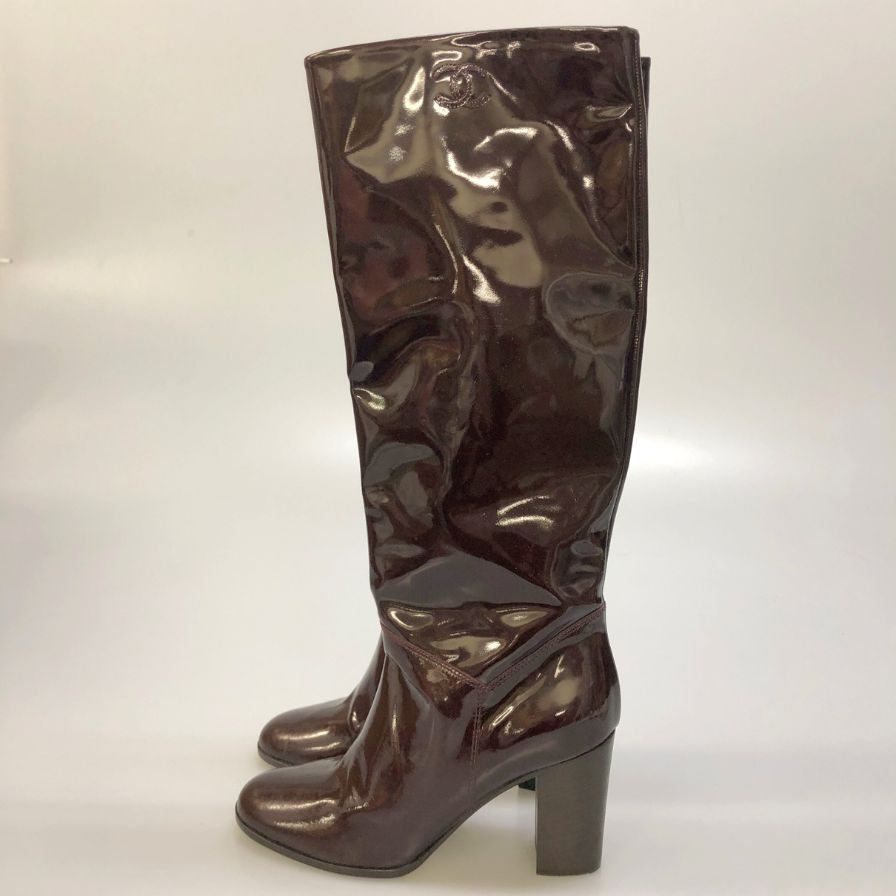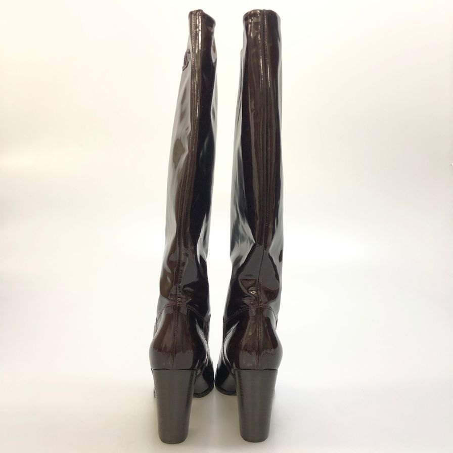 シャネル パテントレザー ロングブーツ ココマーク ブラウン レディース サイズ39C CHANEL 約25.5cm【AFC47】