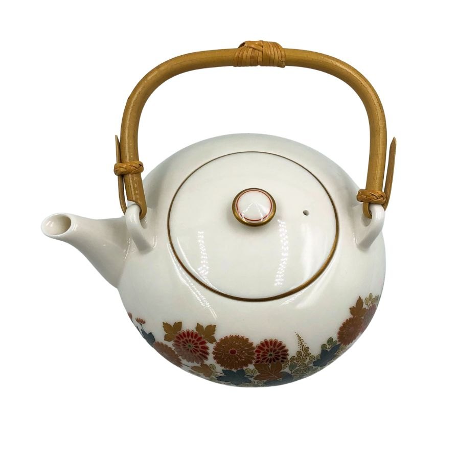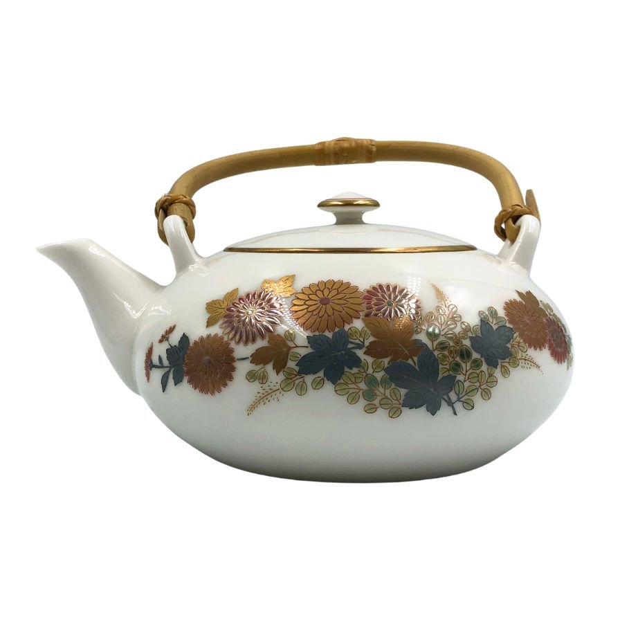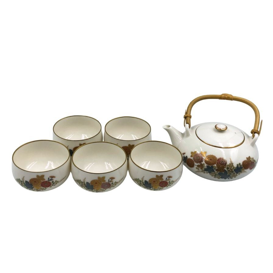 香蘭社 花柄 ホワイト×ゴールド 急須・湯呑セット【AFI26】【中古】