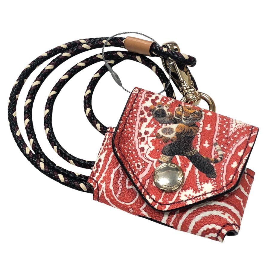 エトロ エアポッズケース カンフーパンダ AirPodsケース レッド系 レザー ETRO【AFI3】【中古】