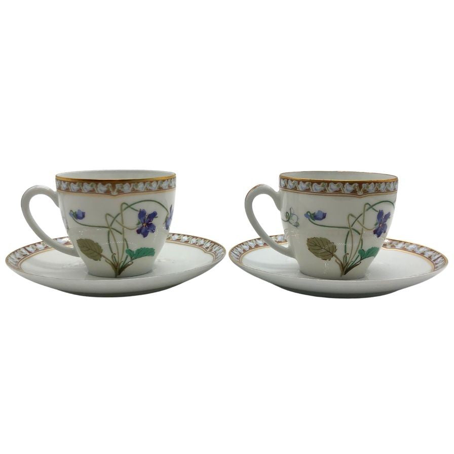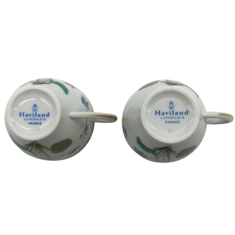 アビランド リモージュ カップ&ソーサー 2組セット デミタスカップ エスプレッソ 花柄 ホワイト系 Haviland LIMOGES【AFI26】【中古】