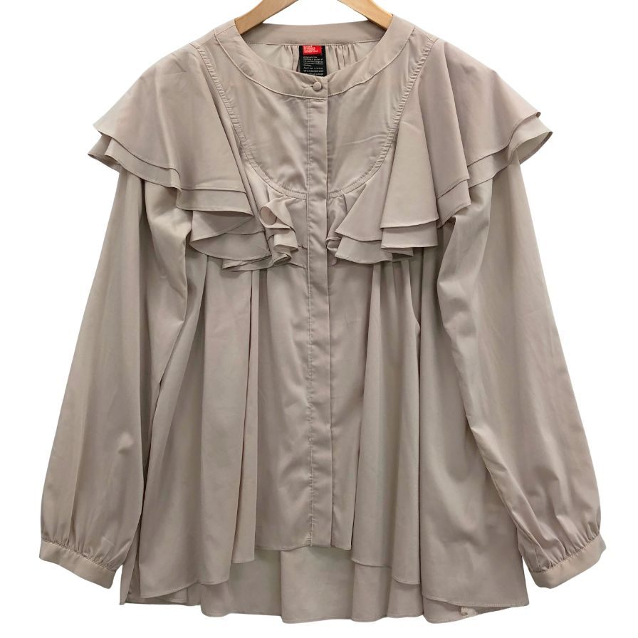 中古◆ダブルスタンダードクロージング 長袖カットソー ロングスリーブ フリル デザイン ベージュ系 レディース サイズF DOUBLE STANDARD CLOTHING 【AFB30】