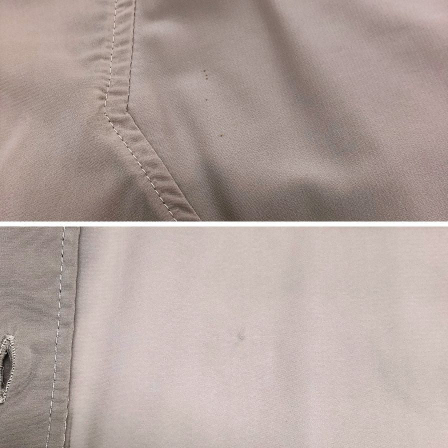 襟元変色弱、肩付近シミ、内側ホツレが見られます。 |