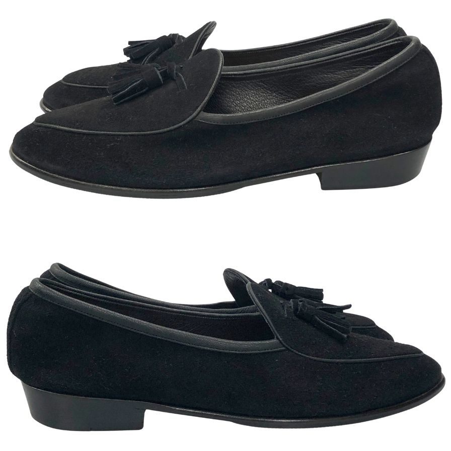 ボードインアンドランジ ローファー サガンタッセル ブラック アンラインド スエード サイズ39 メンズ BAUDOIN & LANGE 約24.0cm【AFC47】