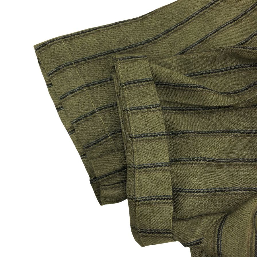 美品◆ロベルト コリーナ 半袖シャツ ボタン ストライプ メンズ カーキ サイズ48 ROBERTO COLLINA 【AFB19】