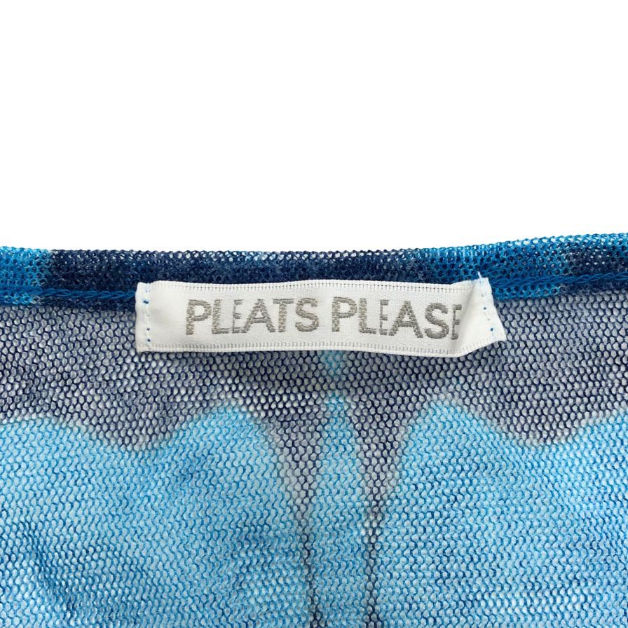 極美品◆プリーツプリーズ イッセイミヤケ 半袖カットソー メッシュ ブルー系 レディース サイズ3 PP34-JR752 PLEATS PLEASE ISSEY MIYAKE 【AFB43】