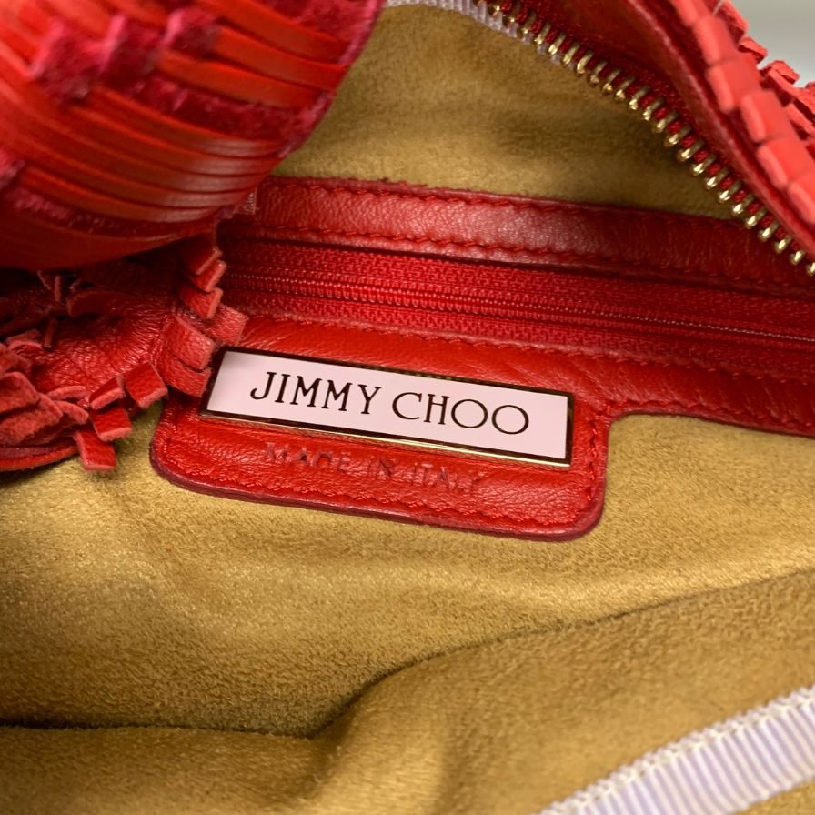 美品◆ジミーチュウ ハンドバッグ フリンジバッグ レザー レッド レディース JIMYY CHOO【AFE12】