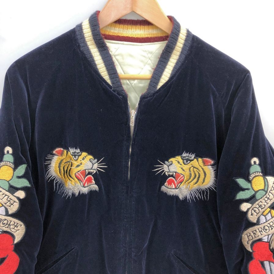 ブランド | テーラー東洋 港商 スカジャン リバーシブル 虎 龍 髑髏 刺繍 メンズ ネイビー 裏地ホワイト サイズ特大 TAILOR東洋 |