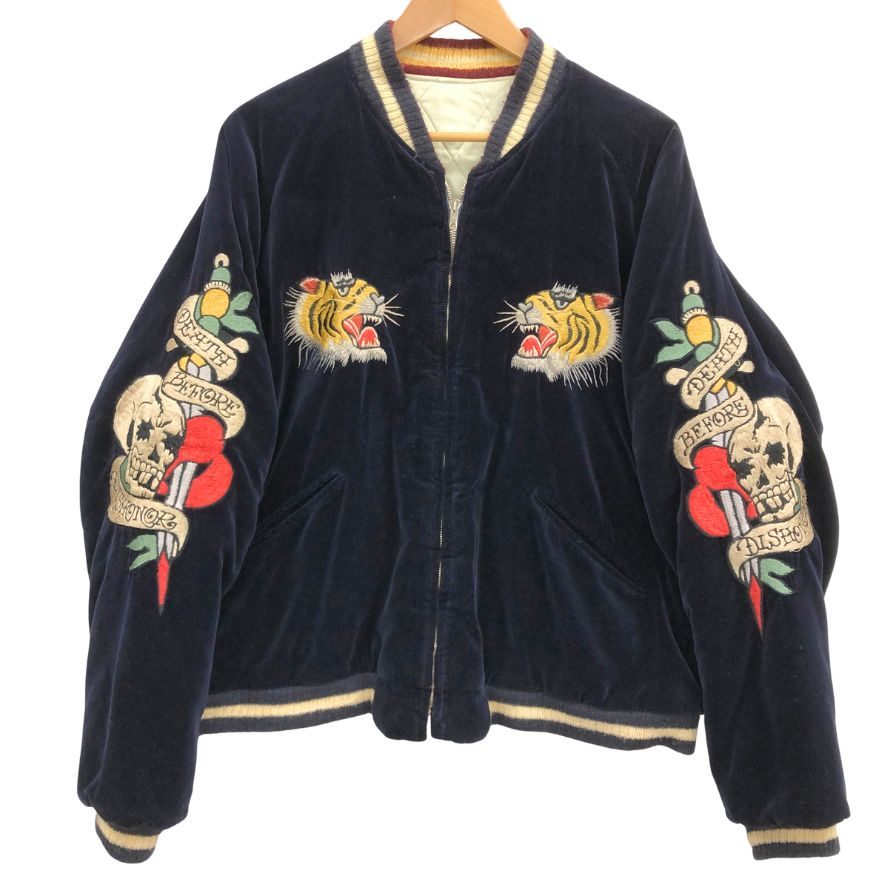 美品◆テーラー東洋 港商 スカジャン リバーシブル 虎 龍 髑髏 刺繍 メンズ ネイビー 裏地ホワイト サイズ特大 TAILOR東洋 【AFA22】