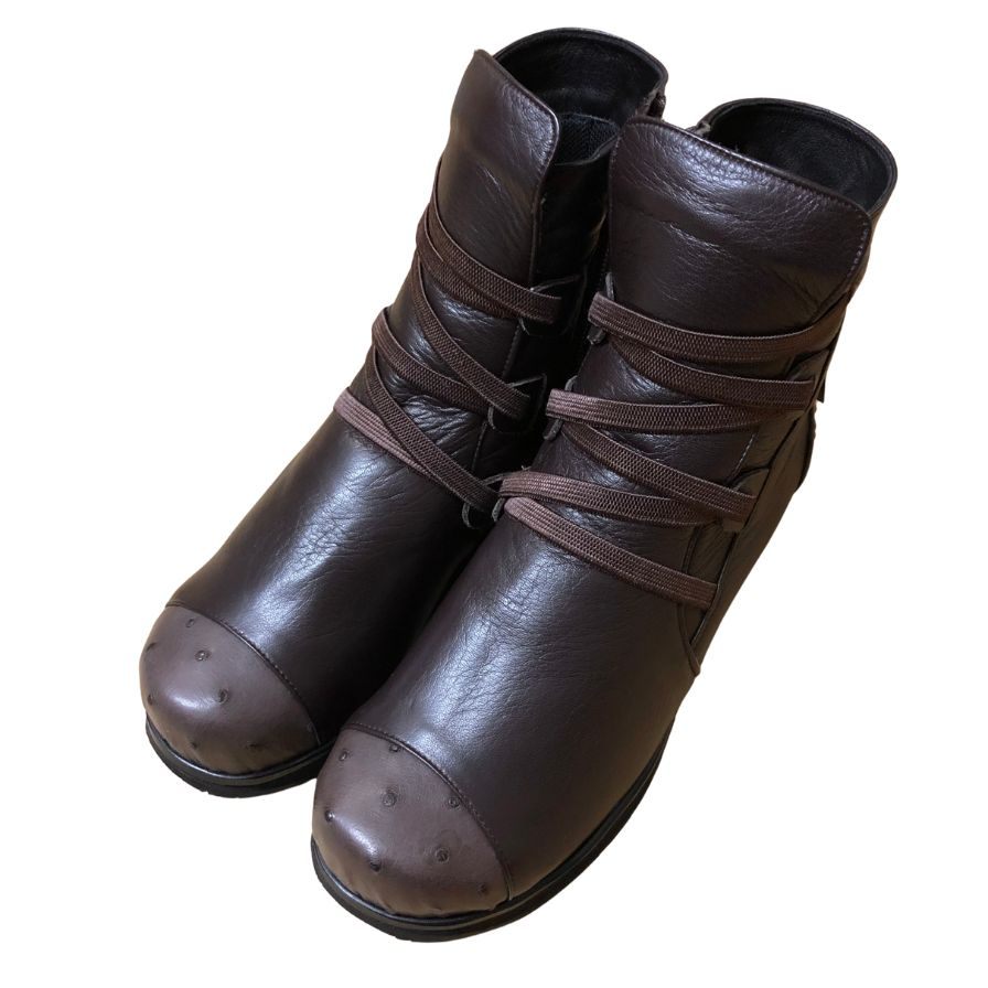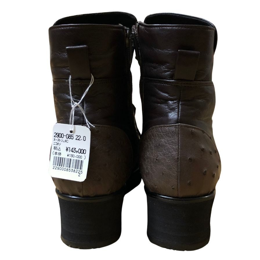 新宿屋 レザーブーツ オーストリッチ 2900-085 ブラウン 22cm レディース shinjukuya 約22.0cm【7F2-1】