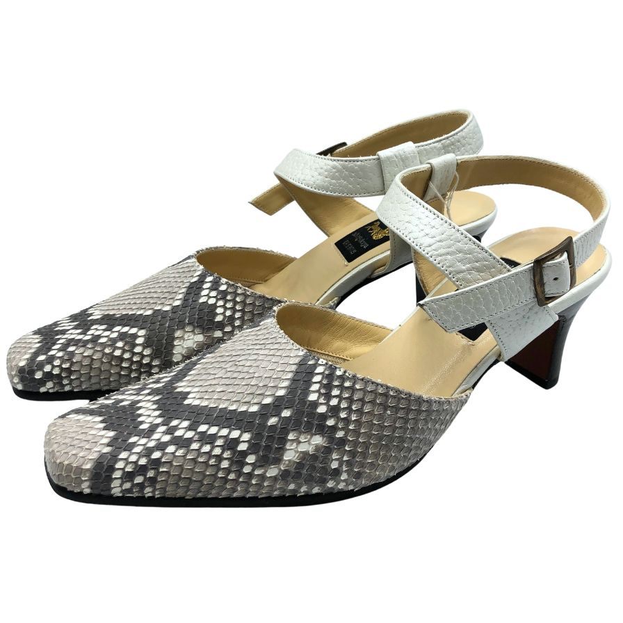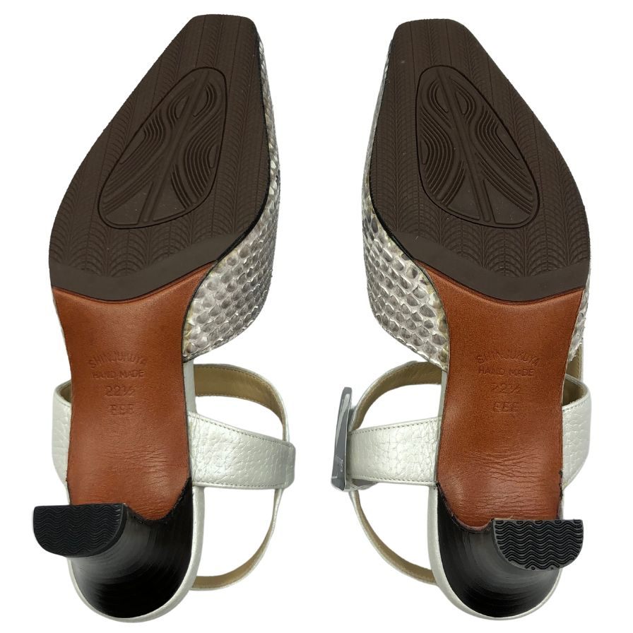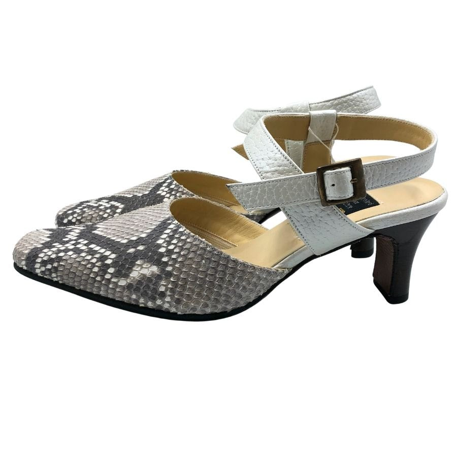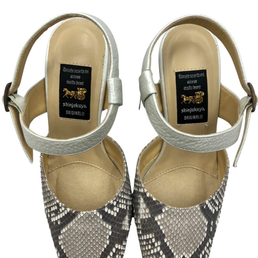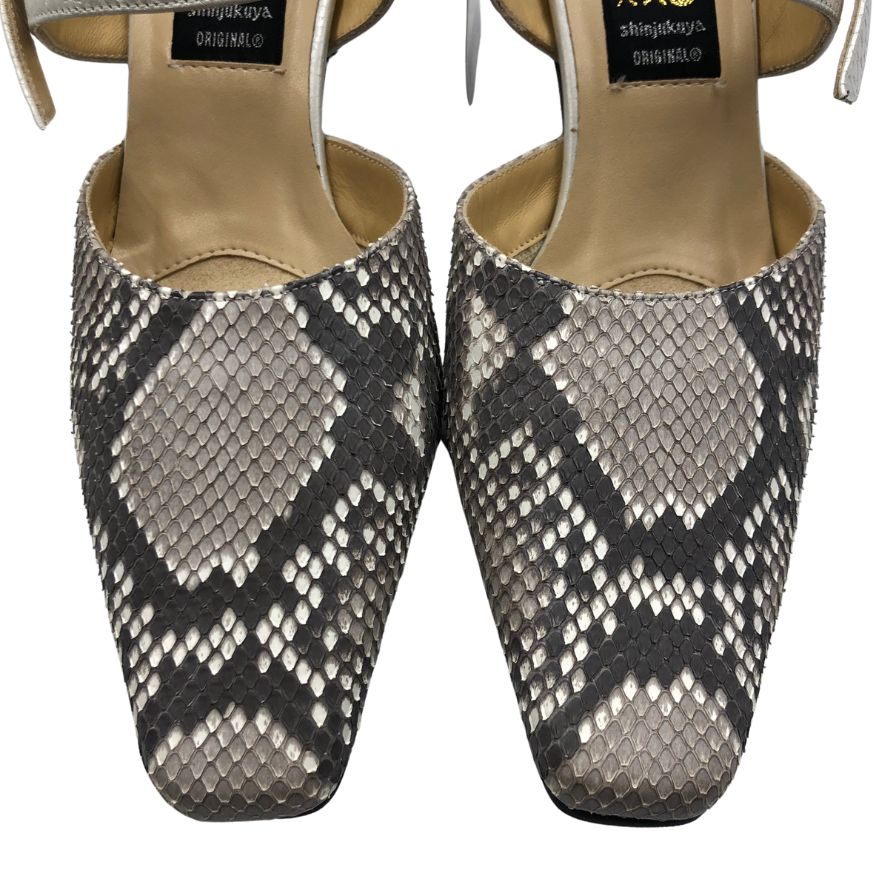新宿屋 レザーパンプス レザー×パイソン 6207-545 グレー×ホワイト 22.5cm レディース shinjukuya 約22.5cm【7-5】