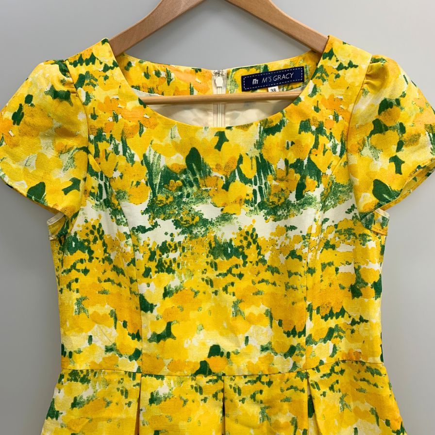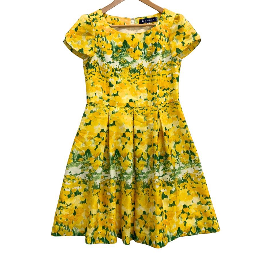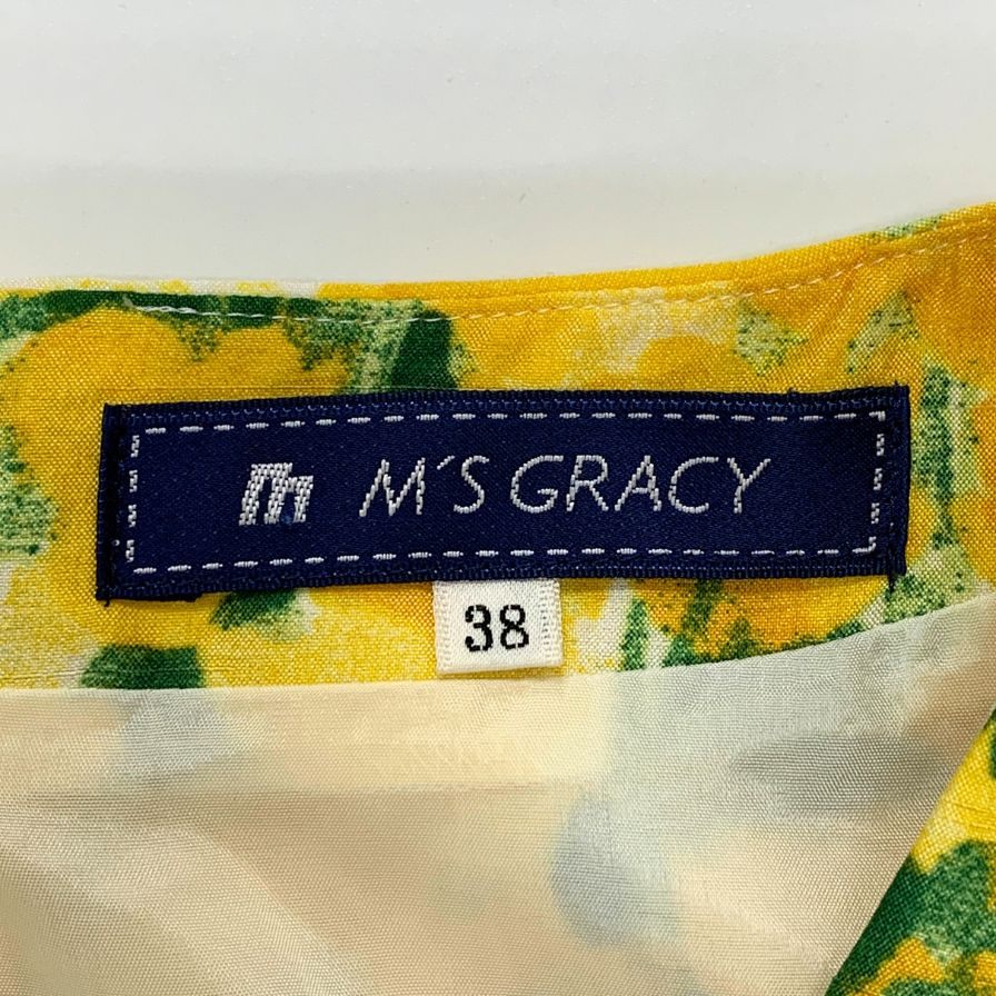 美品◆エムズ グレーシー ノースリーブ ワンピース レディース サイズ38 総柄イエロー M’S GRACY 【AFB12】