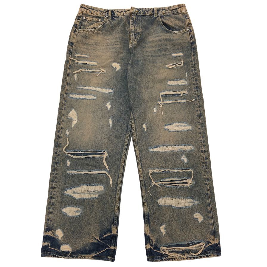 リプレゼント ワイドデニム パンツ バギー ダメージ加工 メンズ サイズ36 ブルー REPRESENT 【AFB28】