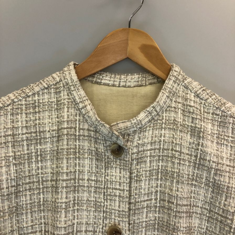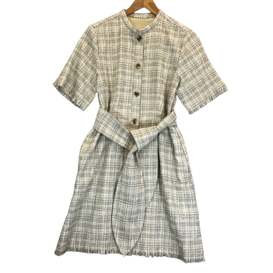 極美品◆ル シェル ブルー 半袖ワンピース ツイードショートドレス ベージュ系 レディース サイズ36 LE CIEL BLEU 【AFB6】
