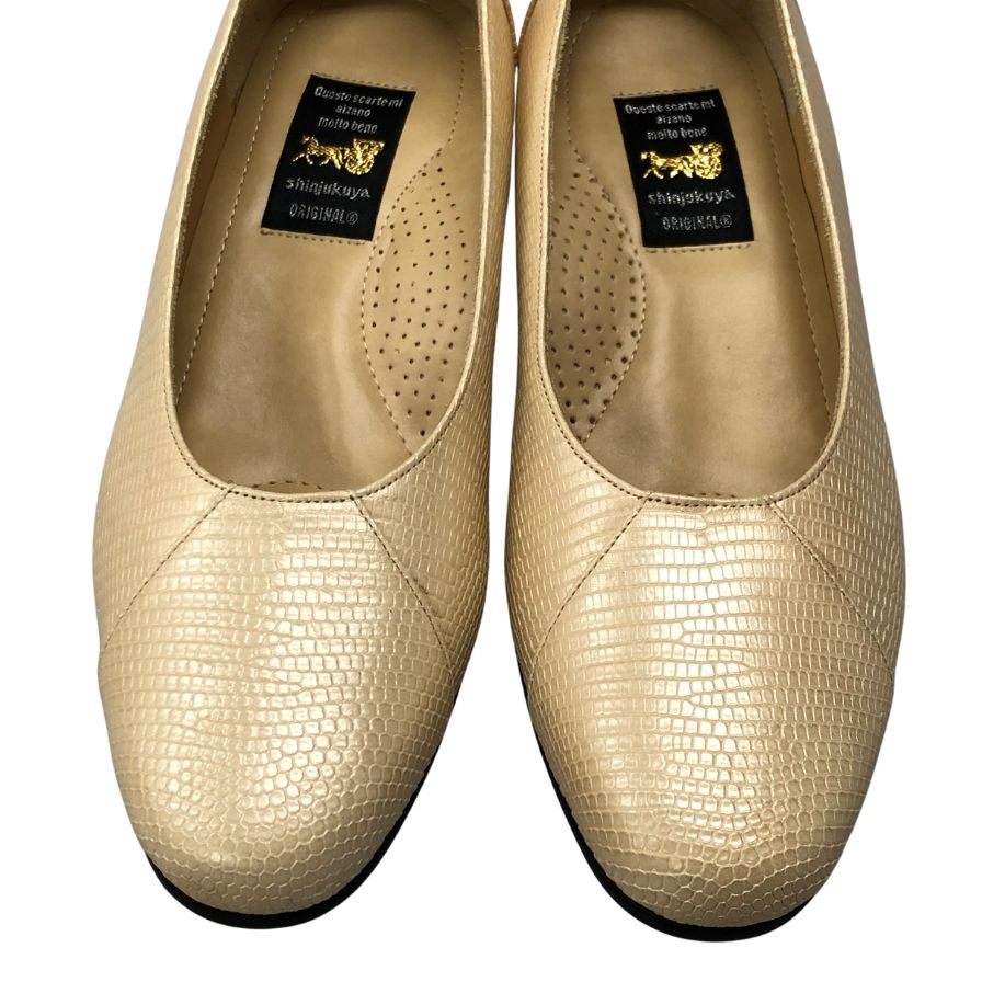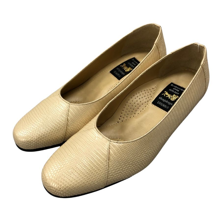 新宿屋 レザーパンプス リザード 4110-955 ゴールド 22.5㎝ レディース shinjukuya 約22.5cm【7-19】