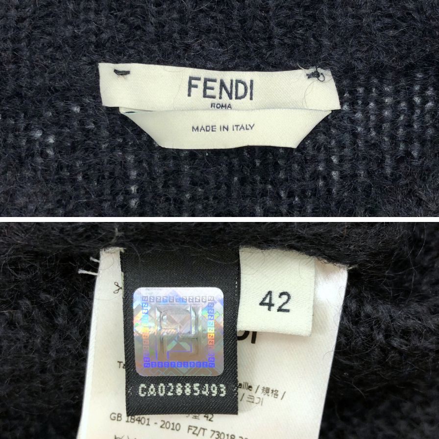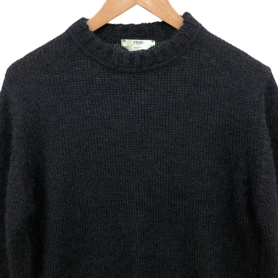 極美品◆フェンディ ニットセーター モヘヤ シルク混 メンズ サイズ42 ブラック FZZ546 Z4D FENDI 【AFB29】