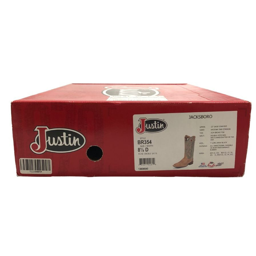 ジャスティン スクエアトゥブーツ ダブル ステッチ BR354 メンズ サイズ8.5D ブラウン系 Justin 約27.0cm【AFD3】