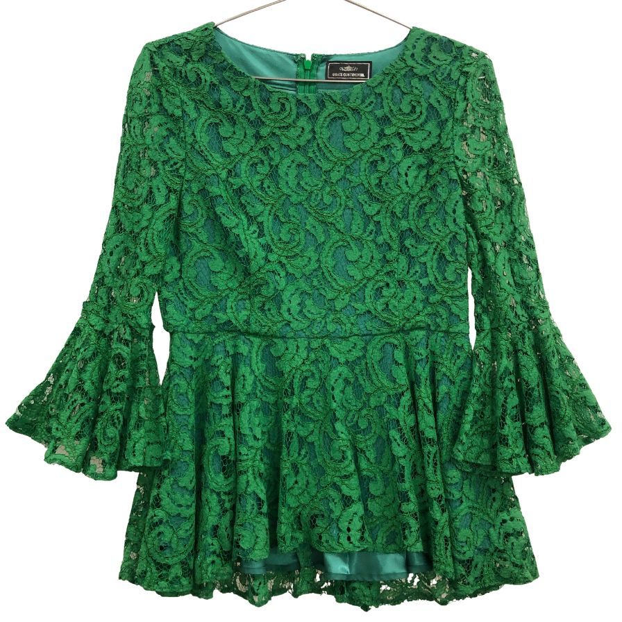 新品同様◆グレースコンチネンタル ワンピース 長袖 レース チュニック レーヨン グリーン レディース サイズ36 GRACE CONTINENTAL 【AFB8】