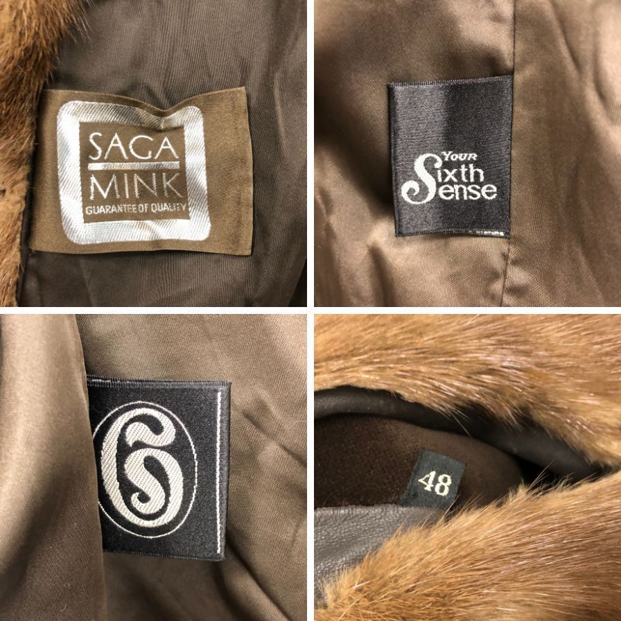 サガミンク ハーフコート ミンク ファー 本毛皮 フックボタン ブラウン レディース サイズ48 SAGA MINK【AFF23】