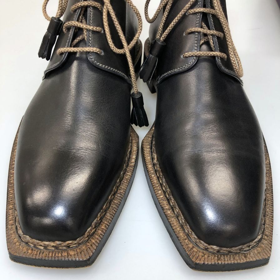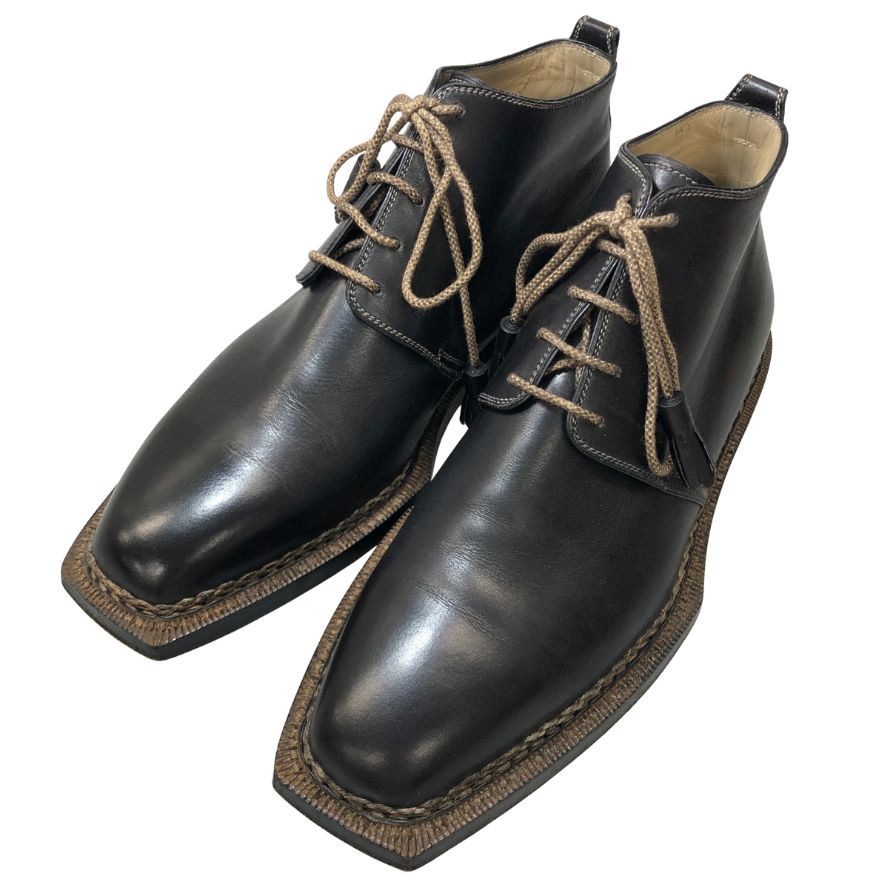 ステファノビ チャッカブーツ スクエアトゥソール タッセルシューレース プレーントゥ メンズ サイズ7 ブラック STEFANOBI 約25.0cm【AFD2】