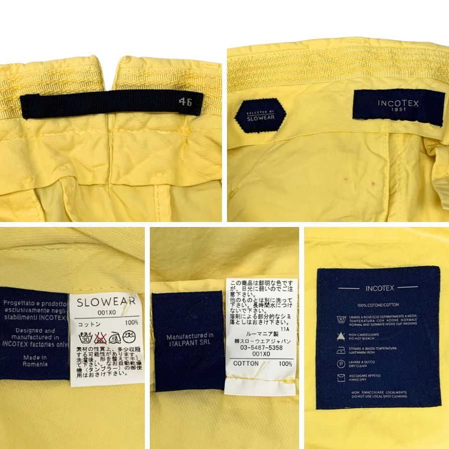インコテックス スラックス コットン イエロー サイズ46 メンズ INCOTEX 【AFB21】