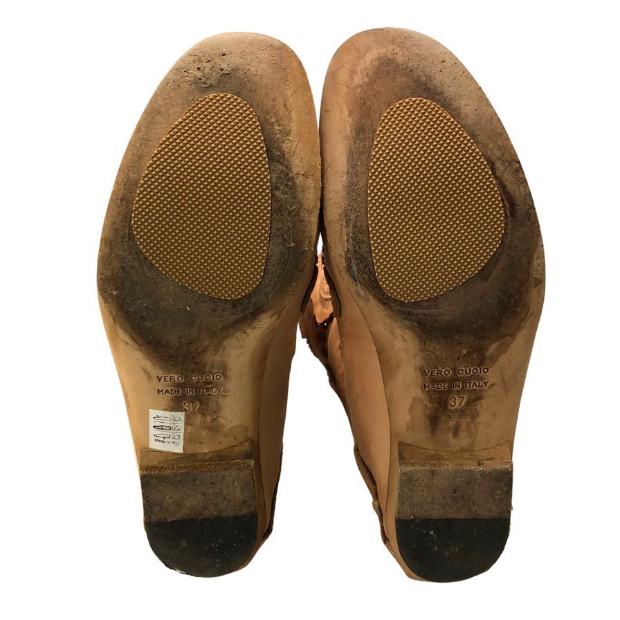 商品詳細 | 表記サイズ【37】(約24.0cm) アウトソール縦:25.5cm アウトソールウィズ:9cm 全高:26.5cm ヒール:0.8cm ※採寸に関しまして1~2cm程誤差が出てしまう場合もございます。予めご了承くださいませ。 |