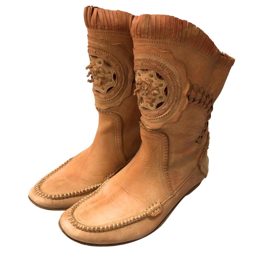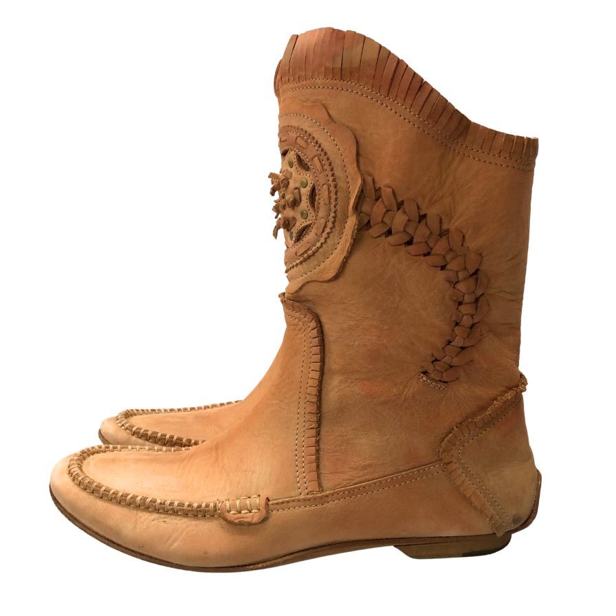 ノーブランド ブーツ イタリア製 ウエスタン レザー サイズ37 ブラウン系 約24.0cm【AFC44】