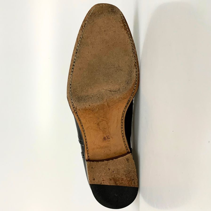 三陽山長 レザシューズ パンチド メダリオン ブラック メンズ サイズ6.5 右足のみ 約25.5cm【AFC44-2】