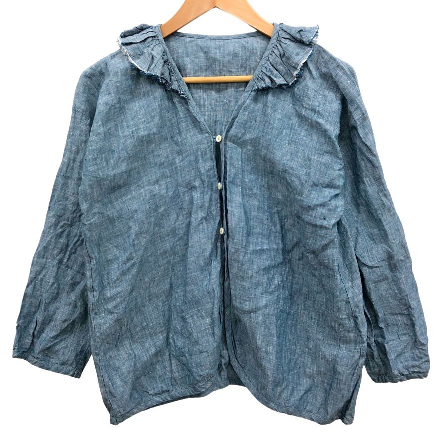 中古◆ジャーナルスタンダード ラックス リネン フリルシャツ レディース サイズ不明 ブルー journal standard luxe 【AFB41】