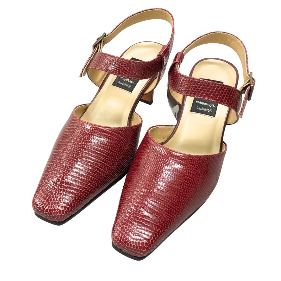 新宿屋 レザーパンプス サンダル リザード 6207-555 ボルドー 23.0cm レディース shinjukuya 約23.0cm【7-6】