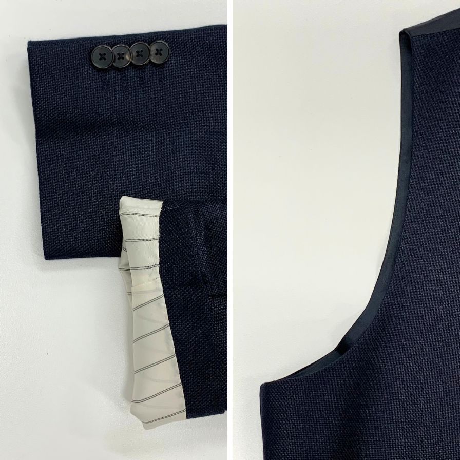 ■ジャケット 表記サイズ上【48】(Lサイズ相当) 着丈:73cm 肩幅:44cm 身幅:49cm 袖丈:63cm 裄丈:cm ■ボトムス 表記サイズ下【48】(Lサイズ相当) ウエスト:43.5cm 総丈:106cm 股下:79cm わたり:32cm 裾幅:21.5cm ※身幅は脇下2cm付近を採寸しております。 ※採寸に関しまして1~2cm程誤差が出てしまう場合もございます。予めご了承くださいませ。 |