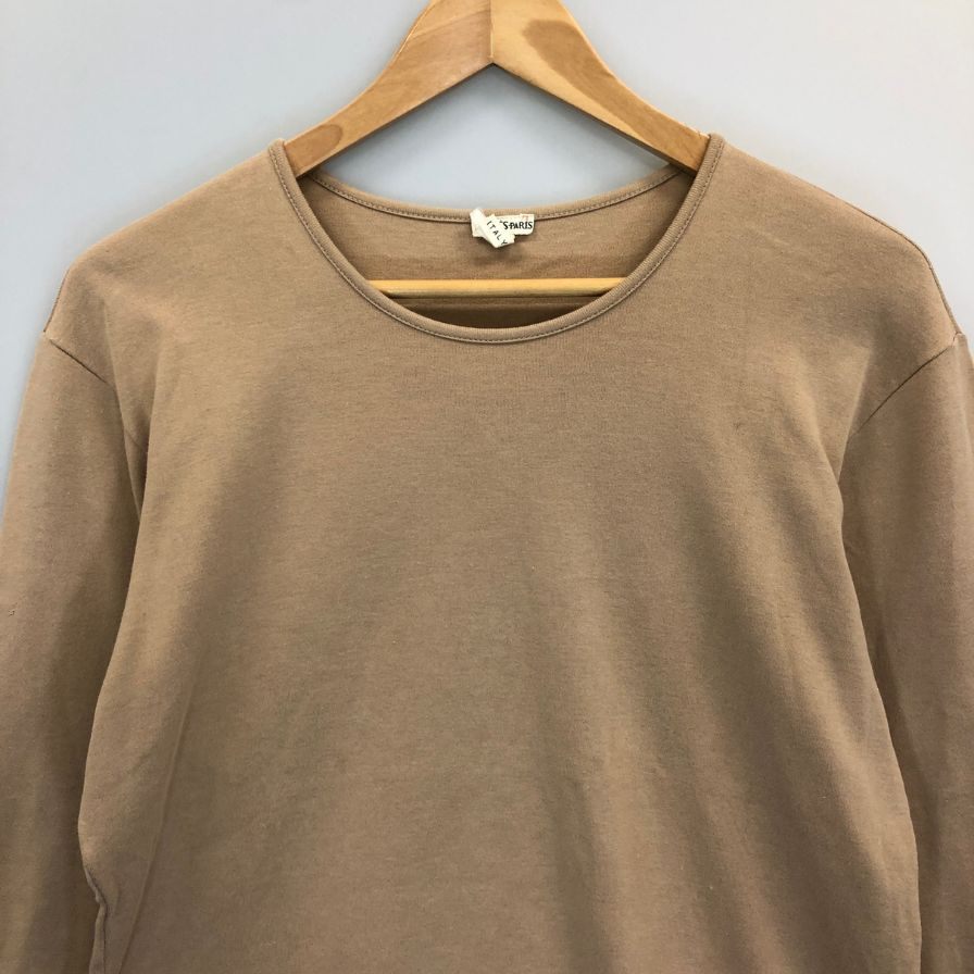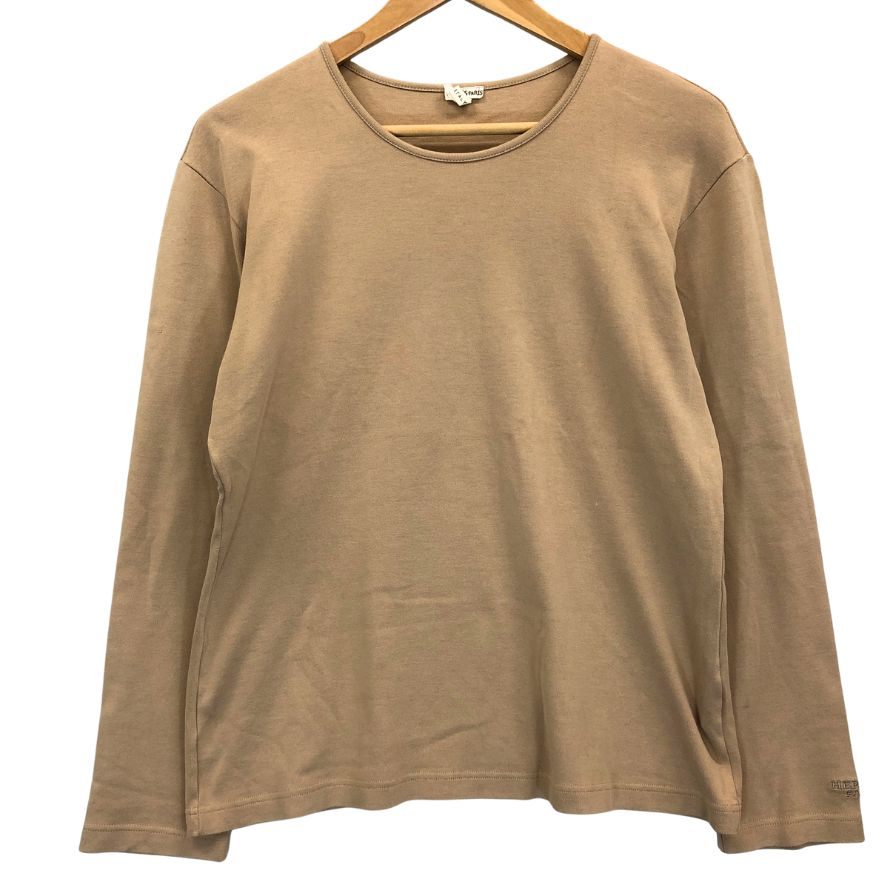 中古◆エルメス 長袖カットソー 袖口刺繍 コットン100% イタリア製 レディース サイズL ブラウン HERMES 【AFB8】