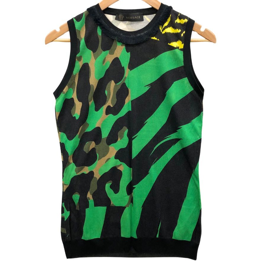 極美品◆ジャンニ ヴェルサーチ タンクトップ ノースリーブトップス シルク100% レディース サイズ40 総柄 GIANNI VERSACE 【AFB31】