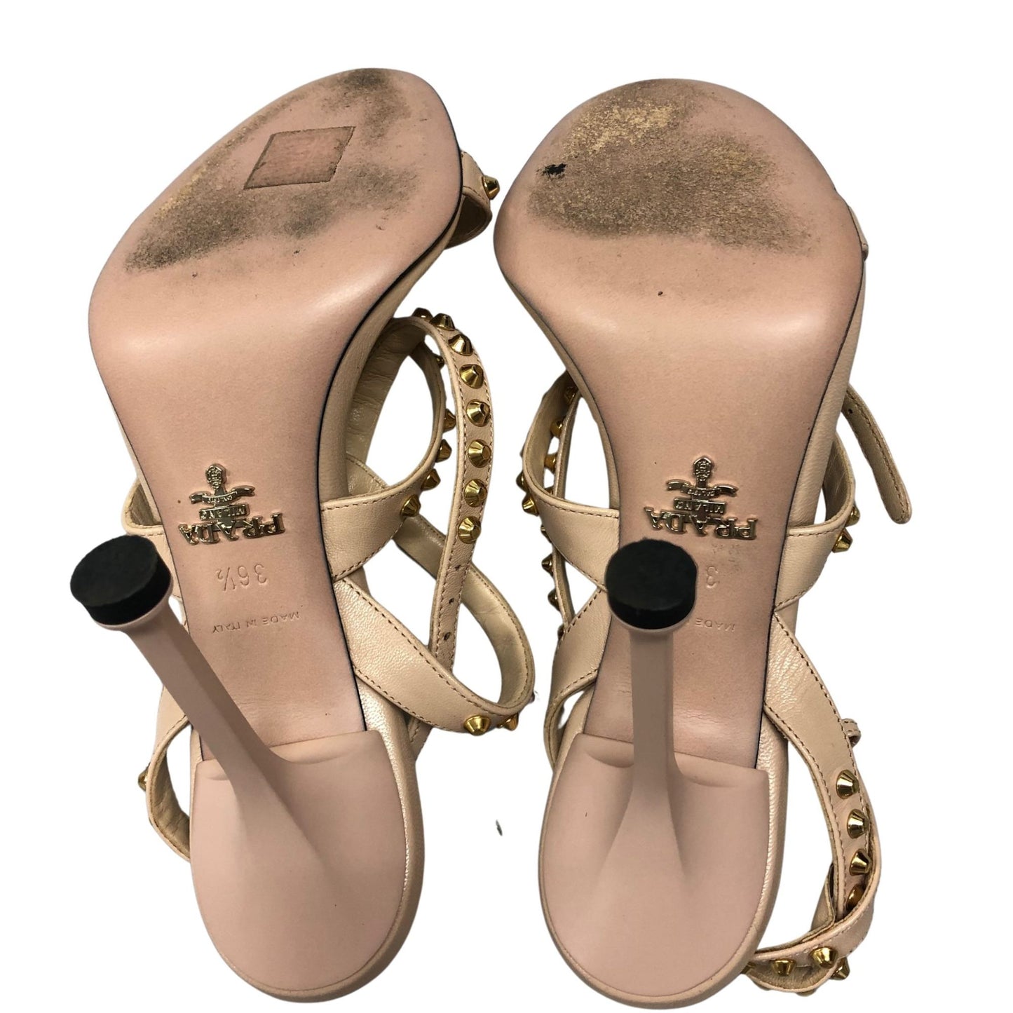 プラダ レザーサンダル スタッズ レディース ピンク サイズ36.5 PRADA 約23.5cm【AFC40】