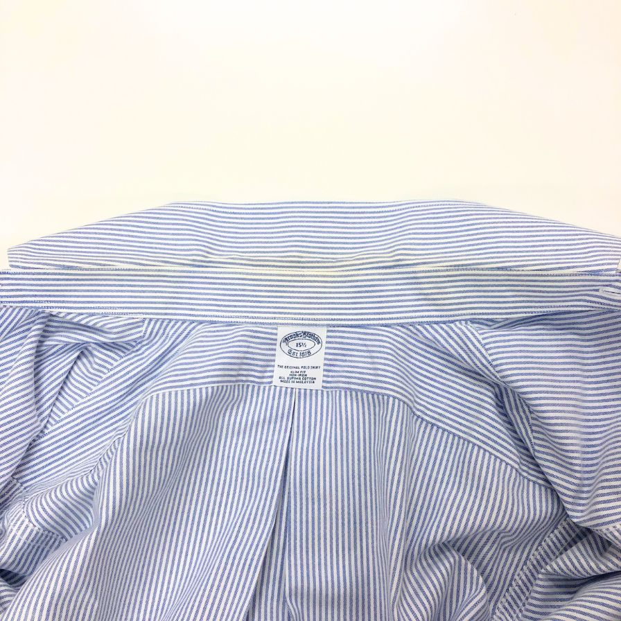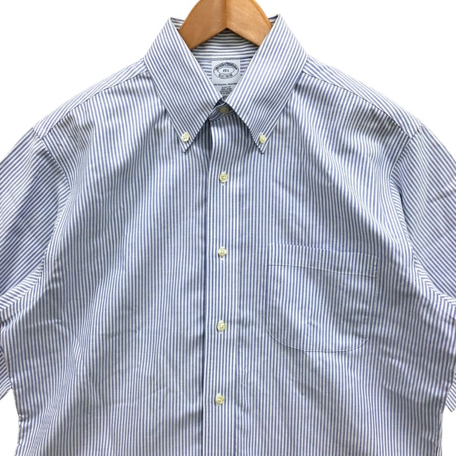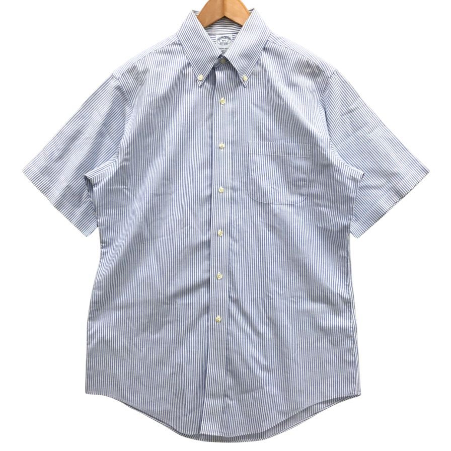 中古◆ブルックスブラザーズ シャツ 半袖 ボタンダウン ストライプ 綿 メンズ ブルー サイズ15.5 Brooks Brothers 【AFB25】