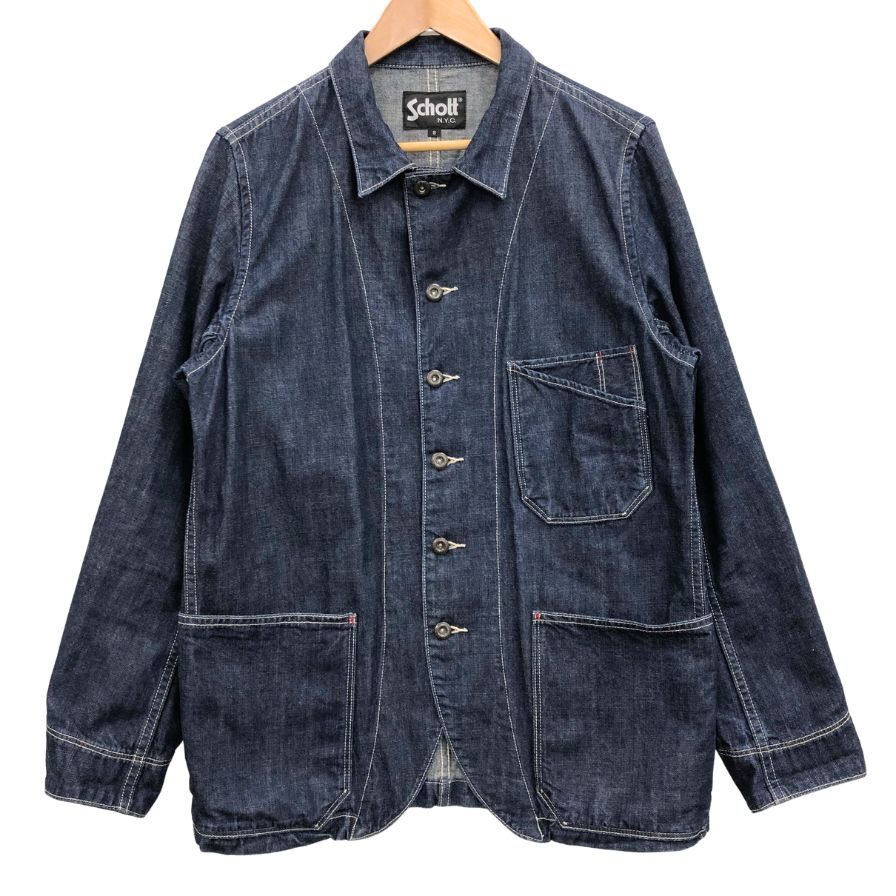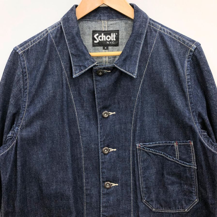 中古◆ショット デニムジャケット カバーオール コットン インディゴ ボタン メンズ サイズS ブルー SCHOTT 【AFB13】