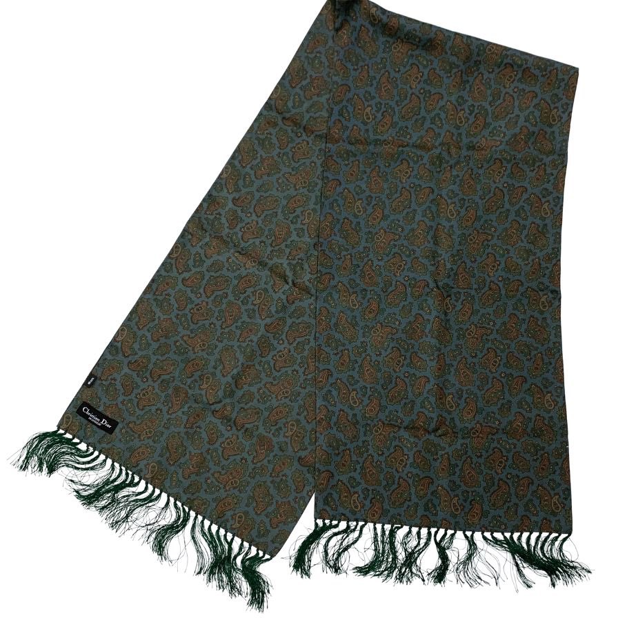 クリスチャンディオール ムッシュ スカーフ ペイズリー 総柄 グリーン系 Christian Dior MONSIEUR【AFI10】